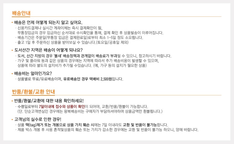 * 택배사 : 업체 직접발송 * 택배비용 : 선불 2,500원 * 배송 예정일 : 구매완료 후 3일 이내 발송 예정(주말, 공휴일 제외) * 문의전화 : 마이페이지에서 확인 가능[교환, 반품 안내] * 제조사/제조국: 모성기술전자/대한민국 [반품/교환시] |